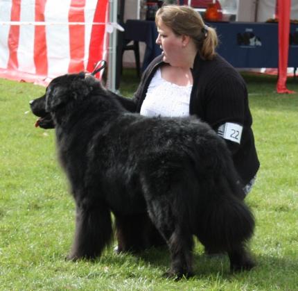 Vorgestellt wird ein 5 ½ Monate alter schwarzer Babyrüde von schon sehr guter Höhe und Länge, z.Zt. sehr gute Ober- und Unterlinie, für das Alter sehr gute Winkelungen typischer Rüdenkopf, gut geschnittene dkl. braune Augen, Scherengebiss, sehr gut gepflegtes mit Babywolle durchsetztes Haarkleid, liebes temperamentvolles Wesen, gut vorgeführt. |