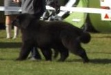 Vorgestellt wird eine 3 ½ Jahre alte schwarze Hündin von guter Höhe und Länge, sehr gut geschnittener Hündinnenkopf, gut geschnittene dkl. braune Augen, Scherengebiss, korrekte Ober- und Unterlinie, sehr gute Winkelung der Vorhand, gute Winkelung der Hinterhand, zum Typ passende Skelettstärke, das Gangwerk zeigt sich in der Schrittfolge korrekt jedoch insgesamt lose und hinten eng, gepflegtes schlichtes Haarkleid, liebes freundliches Wesen, sehr gut präsentiert. |