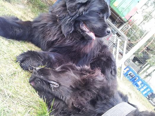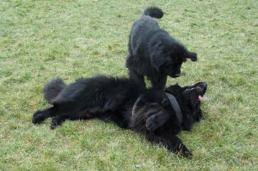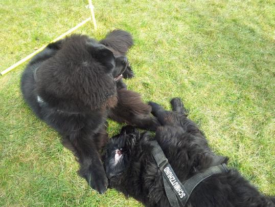 Zwischendurch wurde dann auch im Liegen gespielt wie uns hier Balou und Alana zeigen: