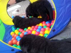 Unsere Welpen werden bis zu Ihrer Abgabe mit einem Transponder gechippt, regelmäßig entwurmt und sind geimpft. Die Welpen werden von einem anerkannten Zuchtwart des DNK abgenommen - jeder Welpenkäufer erhält eine Kopie des Abnahmeprotokolls. Außerdem erhält jeder eine vom Deutschen Neufundländer Klub ausgestellte VDH/FCI Ahnentafel, eine Fütterungsempfehlung, sowie Ratschläge zur Aufzucht eines Neufundländers.
