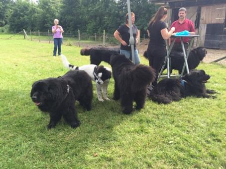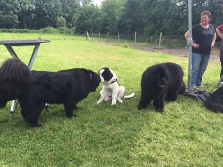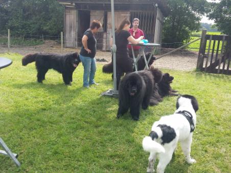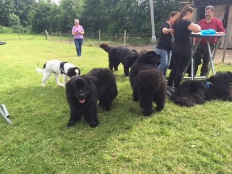 Diesmal hatten wir sogar einen Gast dabei: Urmel, ein ganz süßer Landseer-Rüde, der mit seinen beiden Futterspendern zu uns gekommen ist, immer mittendrin war und es sichtlich genoß mit den ganzen Neufi`s zu spielen!